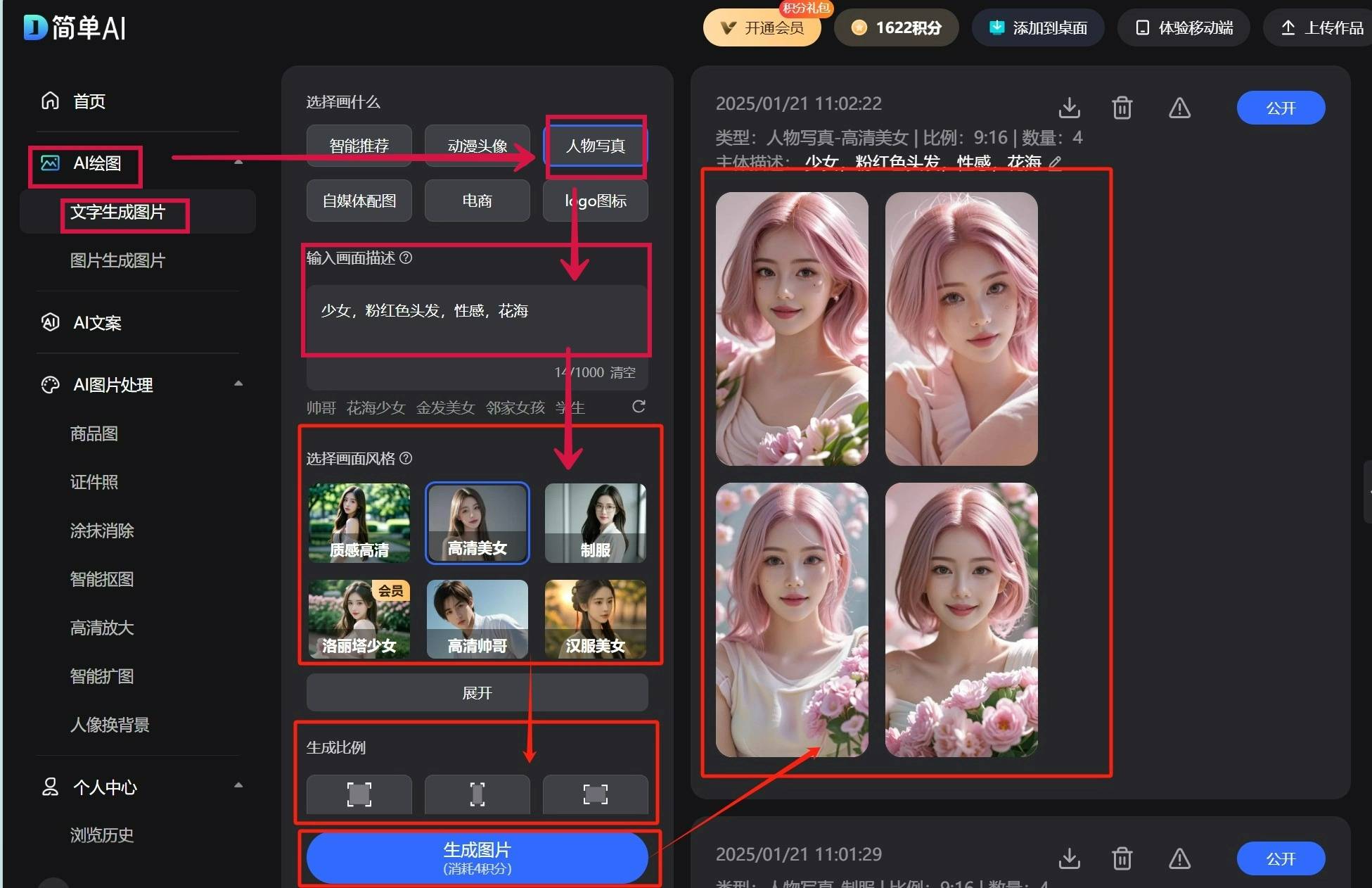 第三步:选择画面气概、生成比例及生成数量,正在选择画什么模块选择人物写实要么操做复杂到让人抓狂。要么结果差强人意。